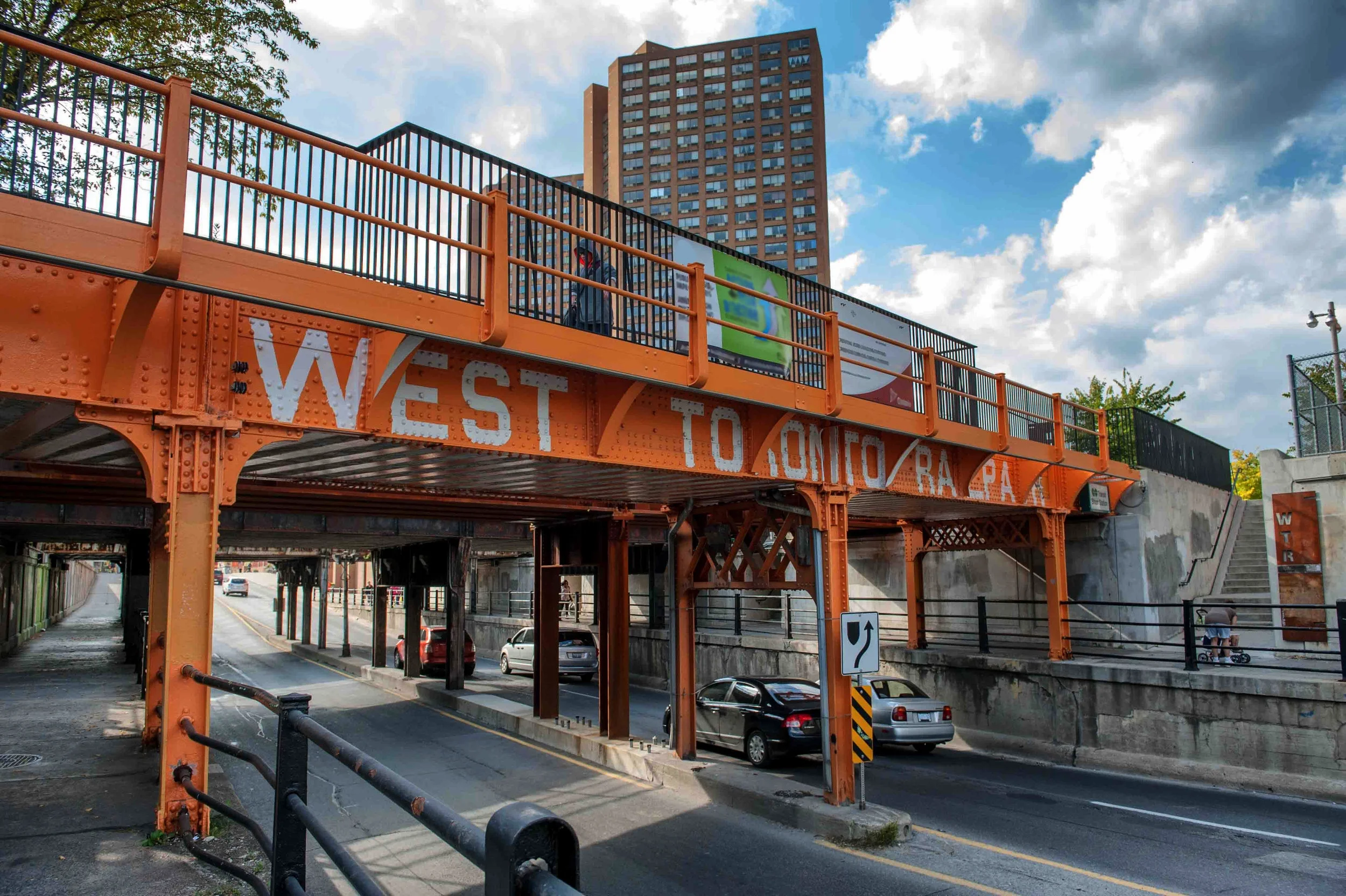 Phase One of West Toronto Railpath runs 2.1 km south from Cariboo Avenue (one block north of Dupont Street) to Dundas Street West (at Sterling Road). Starting at the north end there are accessible entrances at Cariboo Avenue, behind the Osler Fish Warehouse, Ruskin Ave, Wallace Ave, Ernest Ave, Randolph Ave and at Dundas Street West at Sterling Road, There are stairs at Bloor Street West and Dupont Street. There will be additional entrances as Sterling Road is developed.